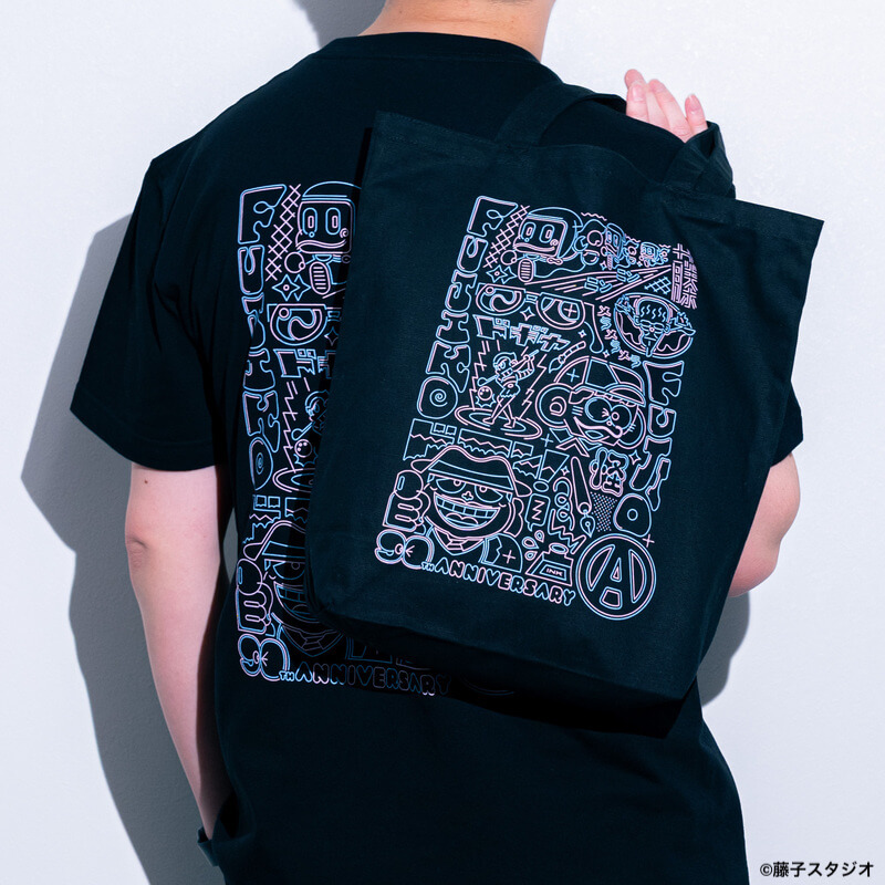 日本郵便「藤子不二雄(A)90周年記念グッズ」キービジュアル / JAN 2024藤子不二雄90周年を記念して、郵便局により制作された記念グッズのビジュアルデザイン。「忍者ハットリくん」「怪物くん」「笑ゥせぇるすまん」「プロゴルファー猿」「真太郎がくる!!」をモチーフに、リスペクトを込めながらも、さりげなく日常に着こなせるアイテムとして案を出しあい制作致しました。