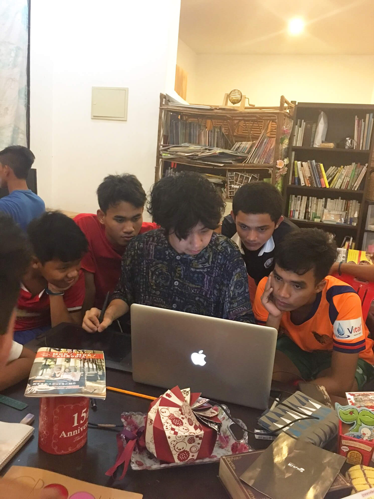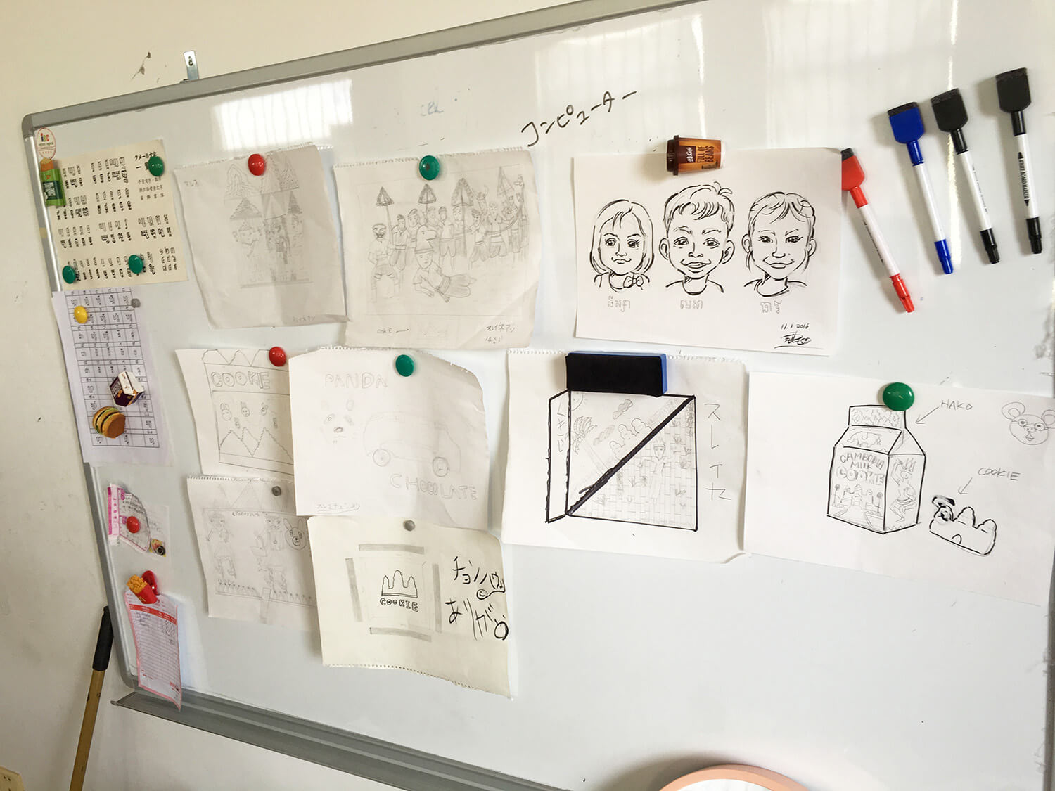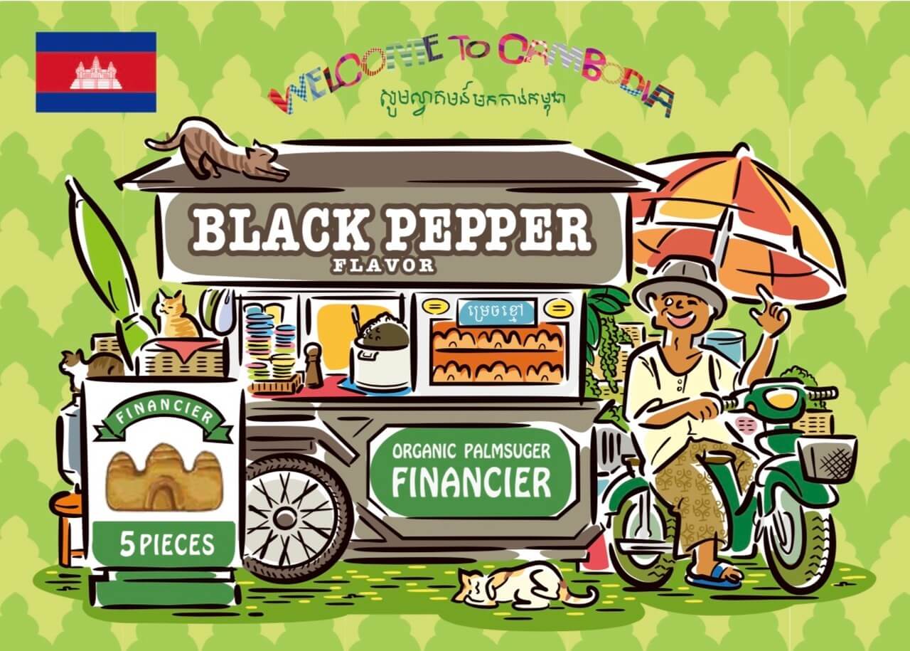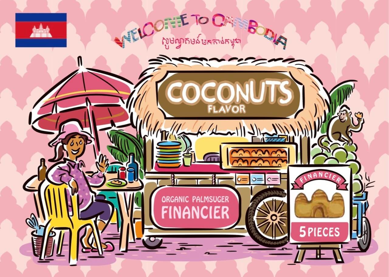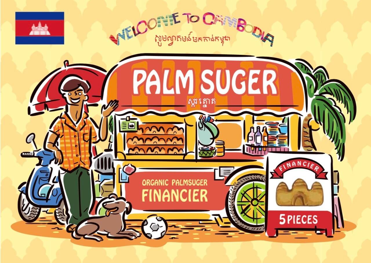 カンボジア「Cook MA」お土産フィナンシェパッケージデザイン / FEB 2018お菓子で創る“カンボジアの未来-Cook MA-プロジェクトで制作した、お土産フィナンシェ用のお菓子パッケージ。現地「くっくま孤児院」のこどもたちと共同で「日常の風景」を切り取り、パッケージデザインとして落とし込みました。produced by ESSPRIDEフィナンシェパッケージ販売風景共同のくっくま孤児院のこども達