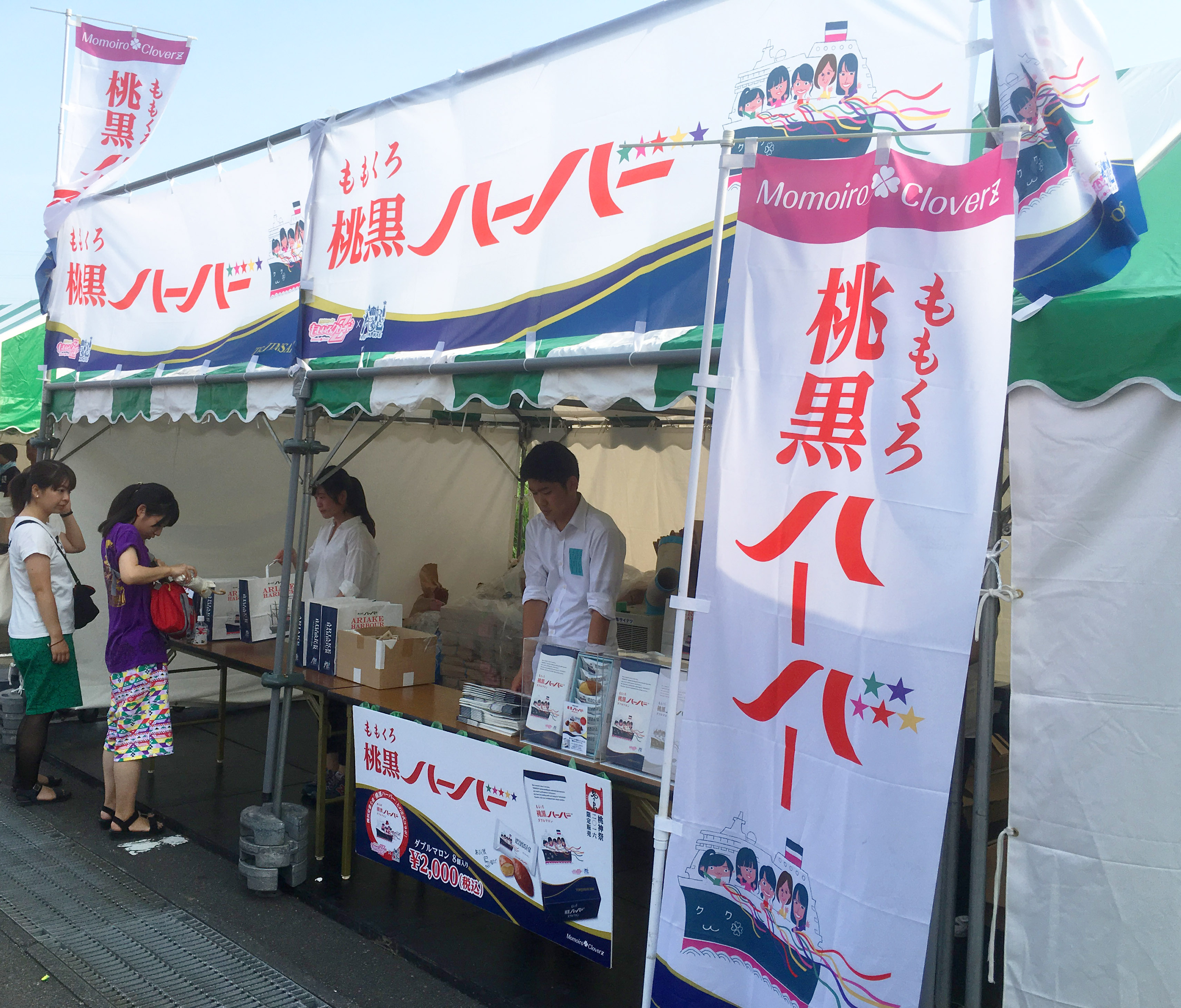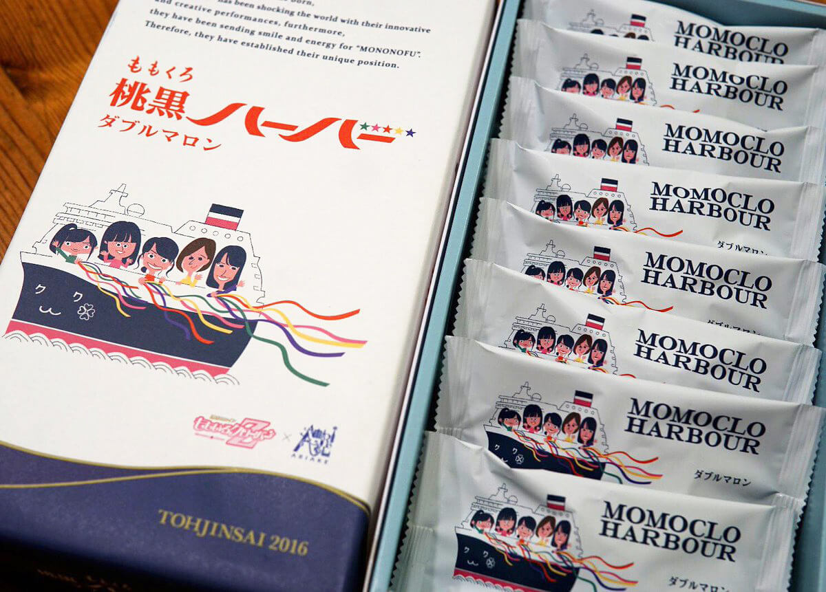 ももクロ「桃神祭~鬼ヶ島~」LIVEお土産お菓子用イラスト / SEP 2016ももいろクローバーZ 「桃神祭」LIVEに使用されたお土産お菓子用のキャラクター。ご当地横濱銘菓の「ありあけハーバー」とのコラボとして、本家の作家テイストに合わせた似顔絵キャラクターを制作。細部までオマージュとして作り込みました。produced by ESSPRIDE販売風景