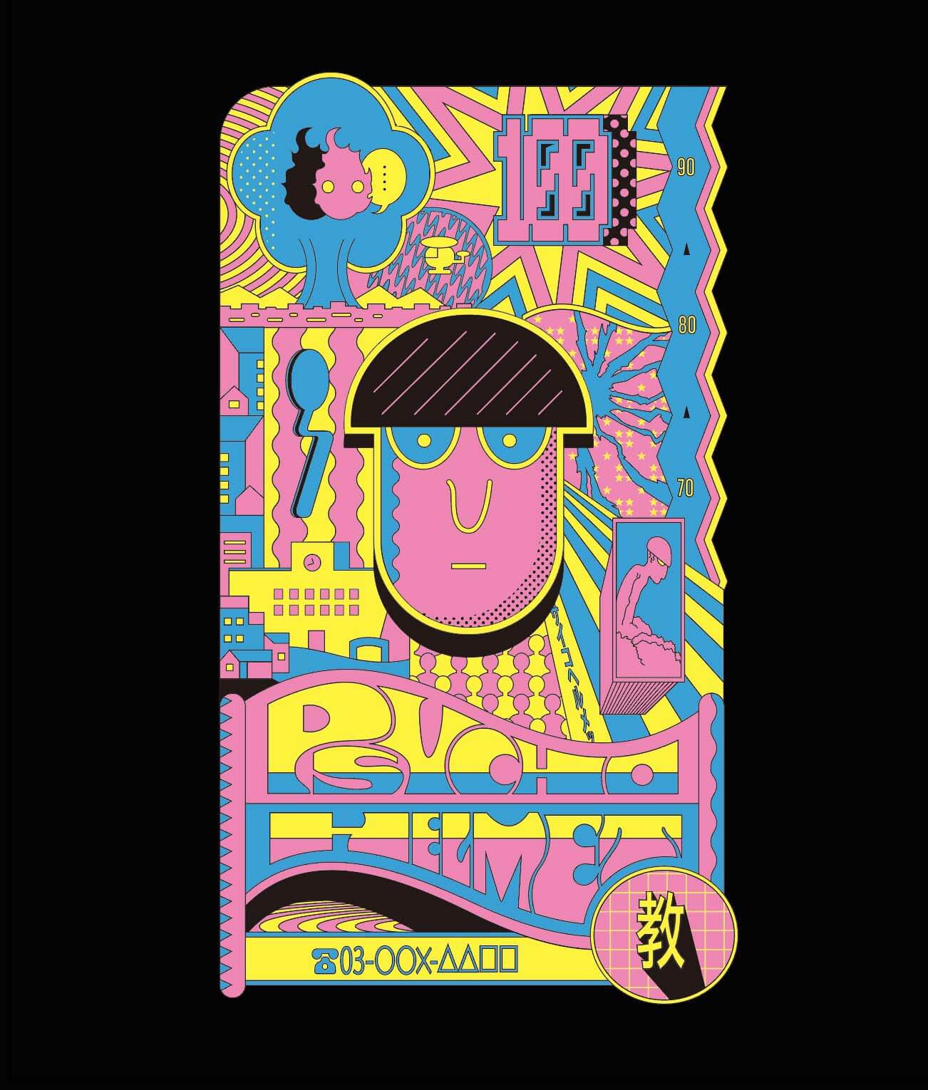 グッズ用イラストを手掛けさせていただきました。サイケ風デザインという全体コンセプトから、